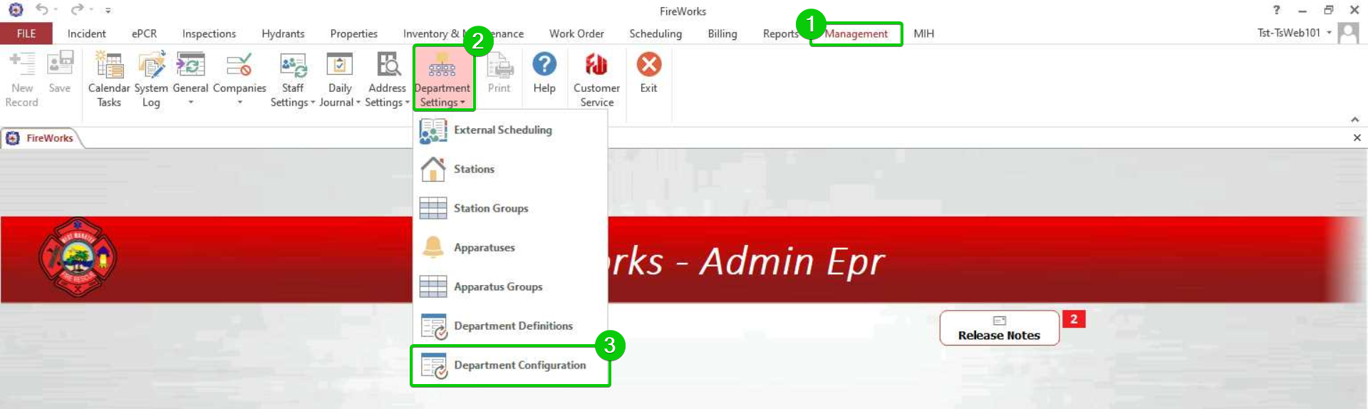 Navigate to Management > Department Settings.